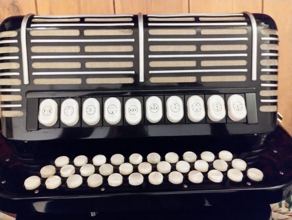 The earliest of the modern Hohner club accordions . A descendant of the Koch. Originally with a wooden keyboard but more commonly with an improved steel mechanism keyboard. This is a lovely sounding box, these came in 19+2. 19+4 (picolletta) and 21+4 (piccola very rare) layouts, there were a couple of other variations on this like the swiss style HUG. These are more like a nice 2 row with a gleighton and make great conversions. do not underestimate the modell 1! These make a far superior altenative to a pokerwork, better reeds, a proper wood case, better keyboard and…look where the accidentals are located, that’s right just where you need them…brilliant